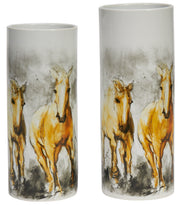 These sculptures, made using polyresin, are polished to give them a smooth texture and a long-lasting shiny look. The horse is sculpted to mimic a strolling horse and accentuates its strong muscular features, long legs, and slender body. The tail is set slightly high like a waving tail of a horse and its head is facing down as a real horse does when it is walking.